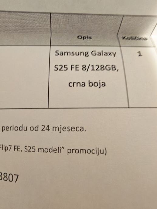 Prodajem novi Samsung S25 FE, neotvorena kutija. Crna boja 8/128 GB.
