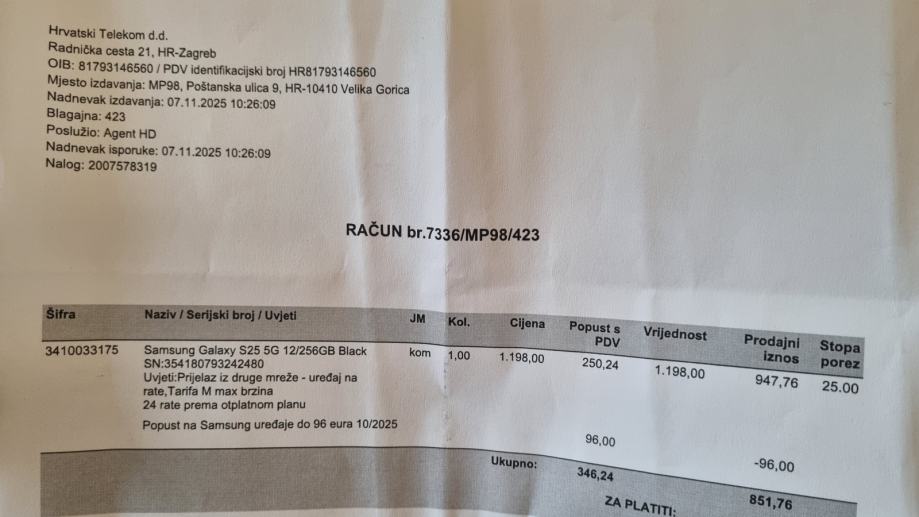 Prodajem novokupljeni nekorišteni S25.