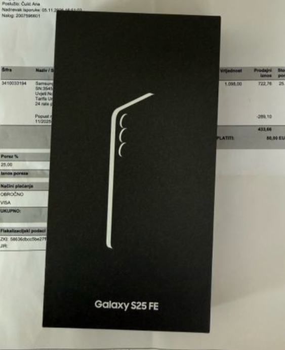 SAMSUNG GALAXY S25FE 5G 128GB NOVI DUOS GARANCIJA ZAPAKIRANO (KUTIJA NIJE OTVORENA)