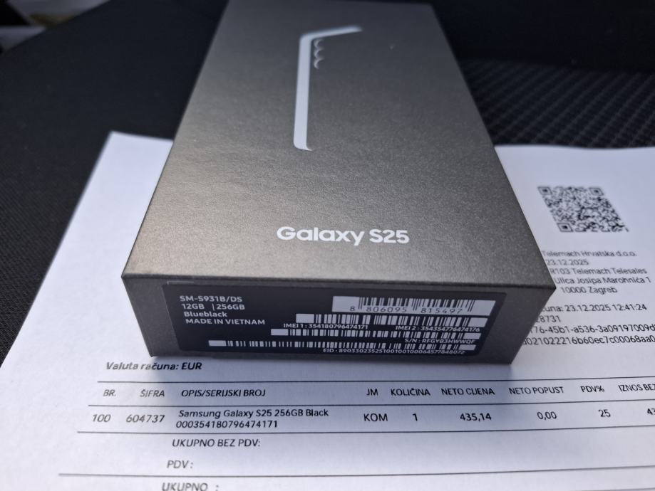 SAMSUNG GALAXY S25 5G BLACK 256GB NOVO ZAPAKIRANO