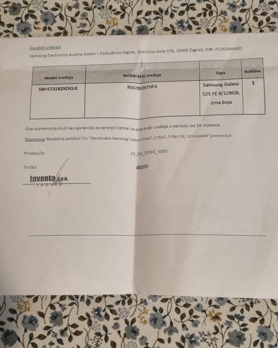 Prodajem nov Samsung Galaxy S25 FE u boji Jetblack, s 128GB interne memorije.