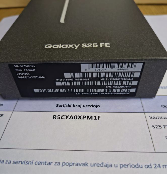 Samsung Galaxy S25 FE 128GB Jetblack Novo Zapakirano Garancija
