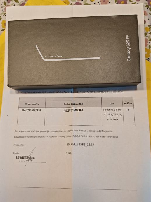 Prodajem nov Samsung Galaxy S25 FE mobitel, nekorišten, zapakiran.
