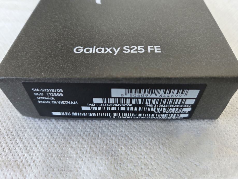 Prodajem novi tvornički zapakiran Samsung Galaxy S25 FE, 8/128, crne boje, garancija 24 mjeseca, cijena 600 eura.