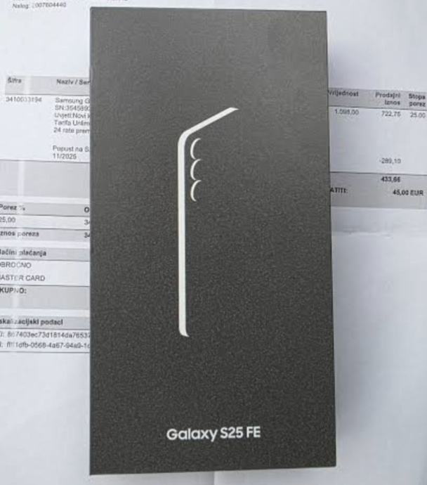 SAMSUNG GALAXY S25FE 128GB BLACK NOVI NE OTVORENA KUTIJA RAČUN HR