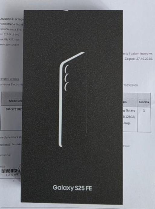 SAMSUNG GALAXY S25FE 5G 128GB JetBlack NOVO ZAPAKIRANO RAČUN