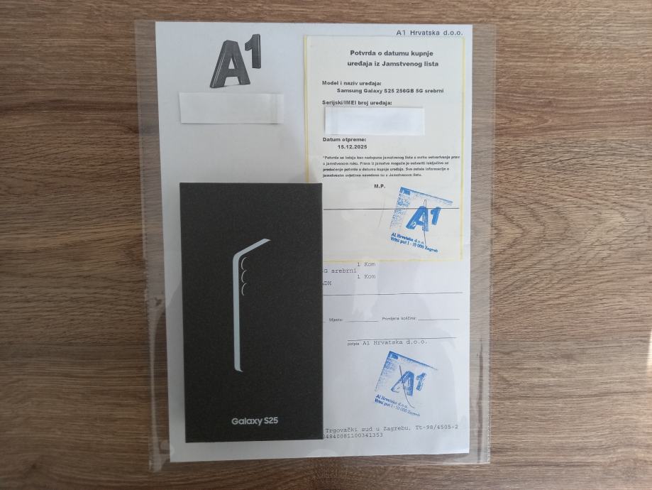 Prodajem Samsung S25 - 12GB/256GB, boja je Silver Shadow(srebrna) - najtraženija. Mobitel je nov, tvornički zapakiran, neotvoren. Ide na sve mreže. Kupljen je u A1, i sa njim dolazi originalni račun i garancijski list iz A1. Garancija je 24 mjeseca.