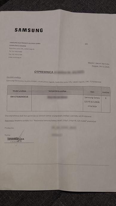 Samsung S25 FE 8/128GB, novi