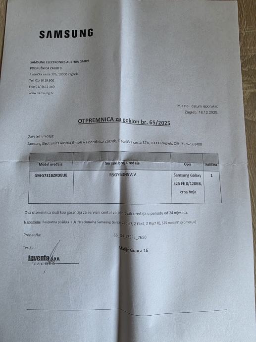 Prodajem novo zapakirani Samsung S25 FE. Garancija 24mj(2 godine)
