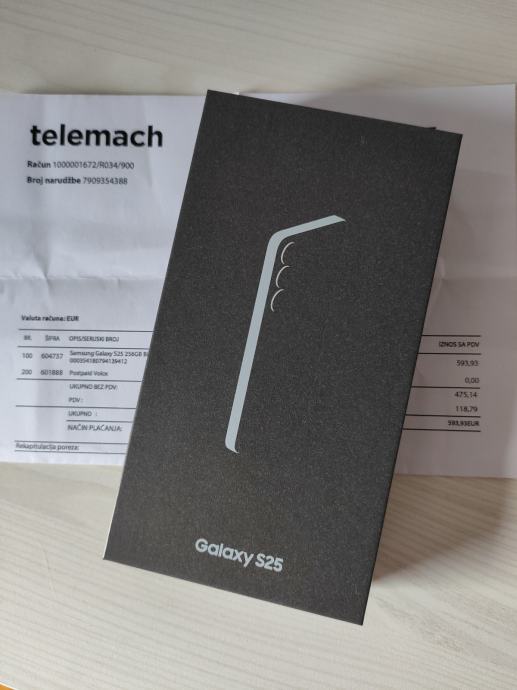 Prodajem Samsung S25, boja crno plava, sa 256GB memorije, kupljen 29.12.25, korišten od 14.01.26, kao nov, maskica i original Samsung punjač, račun i garancija 2 godine