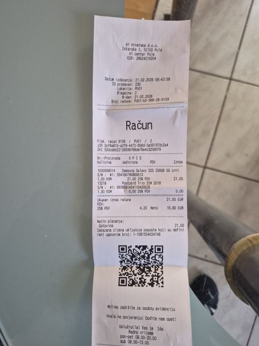 Prodaje se Samsung S25 crni 12/256GB,kupljen 21.02.2026 godine neraspakiran!