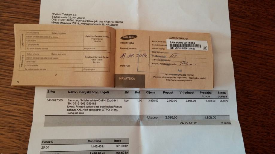 Uređaj je star godinu dana. Kupljen je u T-mobile, 19.01.2014., garancija vrijedi do 19.01.2016.