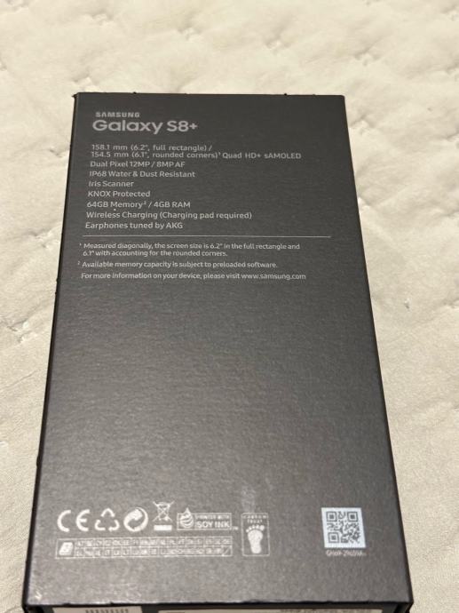 Prodajem crni Samsung Galaxy S8+ (dual Sim, SM-G955F) sa originalnom kutijom (bez drugih sadržaja, nažalost potrošili su se tokom godina, ili pogubili) i sa tri zaštitne maske - orig. Samsung prozirna, crna Spigen Liquid Air i maska s motivom Super Marija (Aliexpress). Uređaj je u izvrsnom stanju, osim nekoliko mikroogrebotina na zaslonu i poleđini. Interna memorija 64 GB + 4 GB RAM + utor za microSD mem. karticu. Baterija je vrlo dobra, sva punjenja su bila odrađena na bežičnom punjaču. Kupljen je novi 2018, korišten cca dvije godine (supruga) i od tada stoji u ladici.