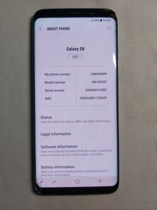 Samsung S8 G950, na mobitelu radi sve normalno, staklo je napuklo i ima par crti (vidljivo na slici),