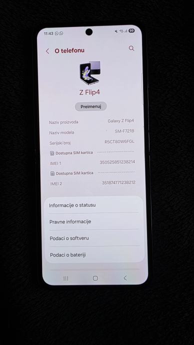 Prodajem rabljeni Samsung Z Flip 4 u odličnom stanju. Mobitel ima preklopni dizajn koji je moderan i praktičan za svakodnevnu upotrebu. Dolazi s originalnim kućištem i potpuno je funkcionalan.Uz mob poklanjam maskicu.