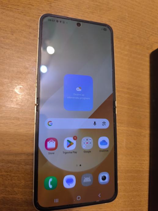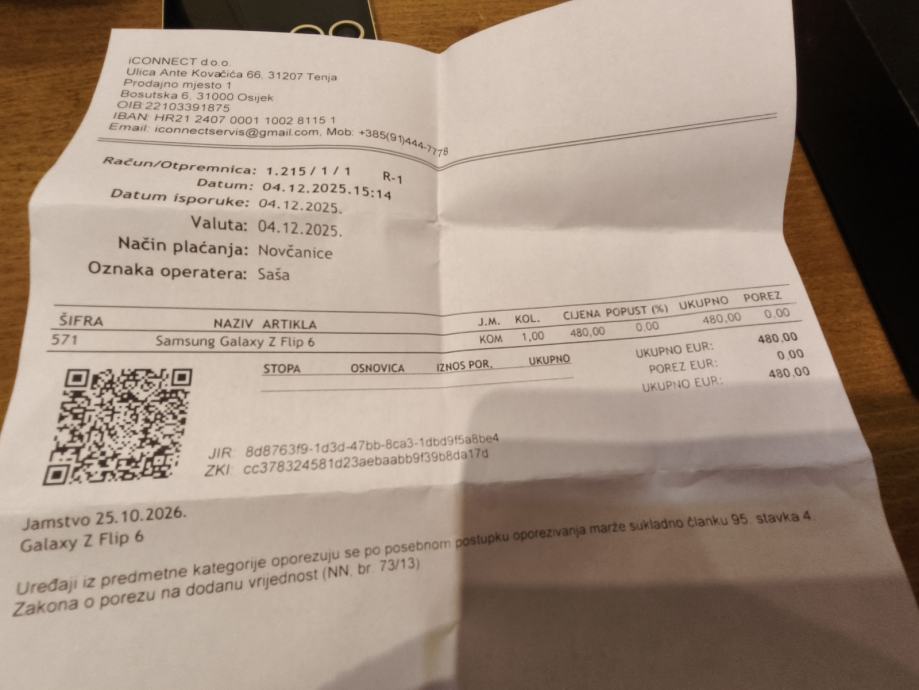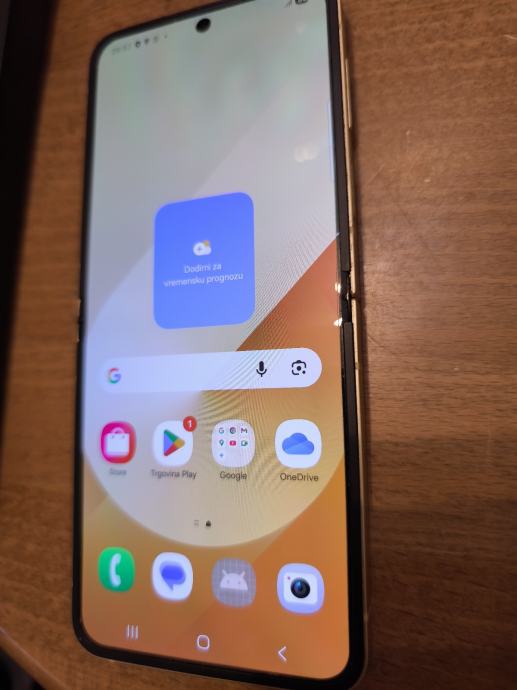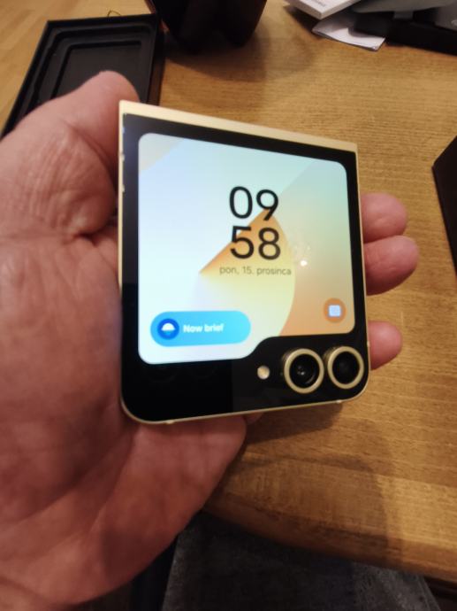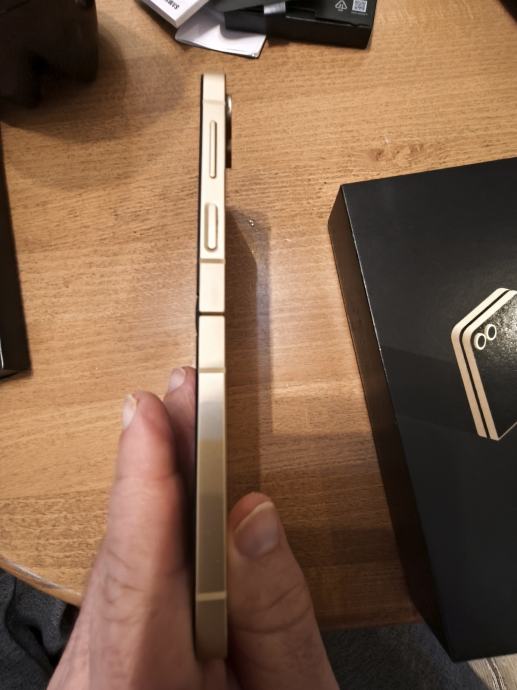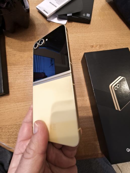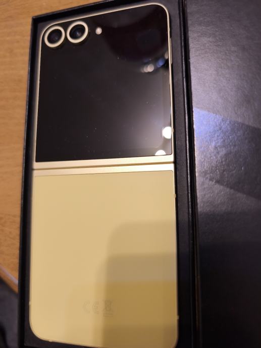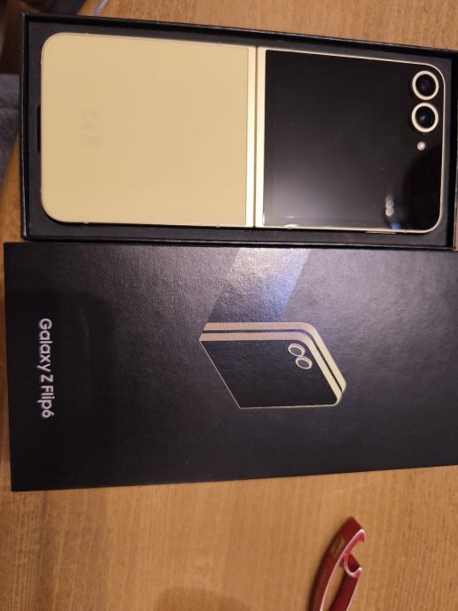 Prodajem rabljeni Samsung Galaxy Z Flip6 u izvrsnom stanju, s originalnom kutijom. Moderni preklopni pametni telefon s dvojnom bojom kućišta: zlatno-crnom kombinacijom koja izgleda elegantno i premium.