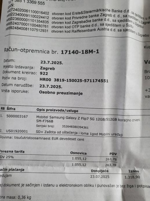 Sa mobitelom je kupljena i dodatna garancija na sva ostecenja.