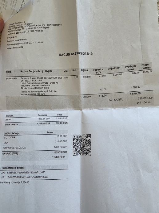 Prodajem povoljno Samsung galaxy fold 5, kupljen 1.9.2023. Uz mobitel dolazi sva pripadajuća oprema kao račun sa garancijom. Mobitel je u potpunosti ispravan. Na poklon dajem 2 nekorištene maskice. Mobitel se nalazi u Varaždinu međutim postoji mogućnost preuzimanja u Koprivnici, Čakovcu, Krapini.
