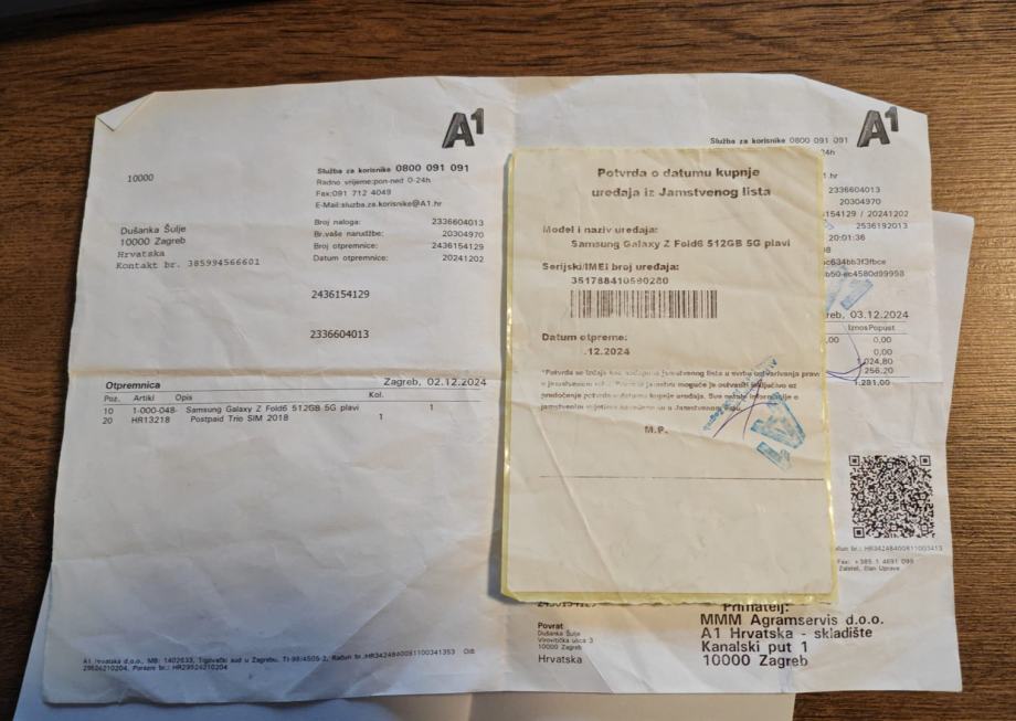 Prodajem u plavoj (navy) boji Samsung Fold 6 sa 12gb rama i 512gb skladišne memorije. Uređaj ima tragove korištenja ali je u potpunosti ispravan te je zbog toga cijena korigirana. Računci garancija A1 do 12/2026. Kupcu na poklon maskica. Cijena 550€. Cijena u zamjeni veća. Primopredaja zg, ostalo po dogovoru. Kontakt broj: 092-2142/607. Može poziv, sms, viber, whatsapp.