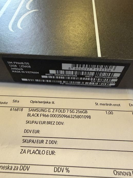Prodajem novi, original zapakiran Samsung Galaxy Z Fold 7 256Gb, boje JetBlack