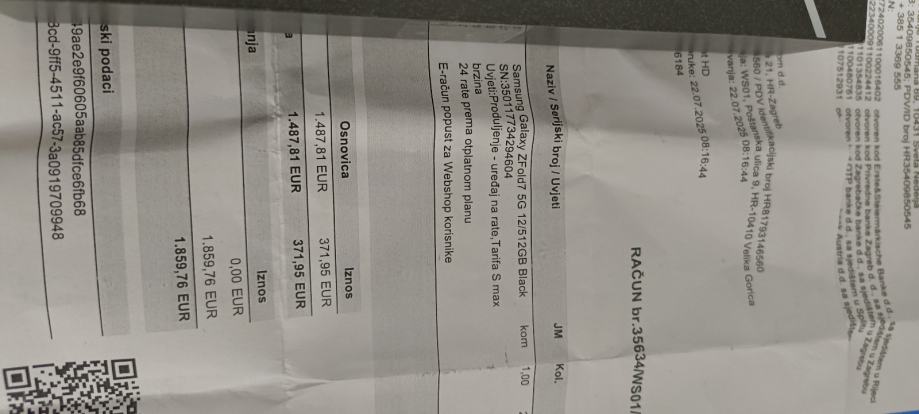 Račun garancija 24 mjeseci od datuma kupnje 27.07.2025