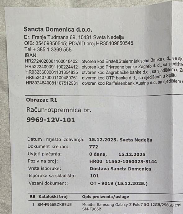 Prodajem Samsung Z fold 7 kuplje 15.12.2025. Korišten 1 dan. Nema tragova korištenja. 098276420