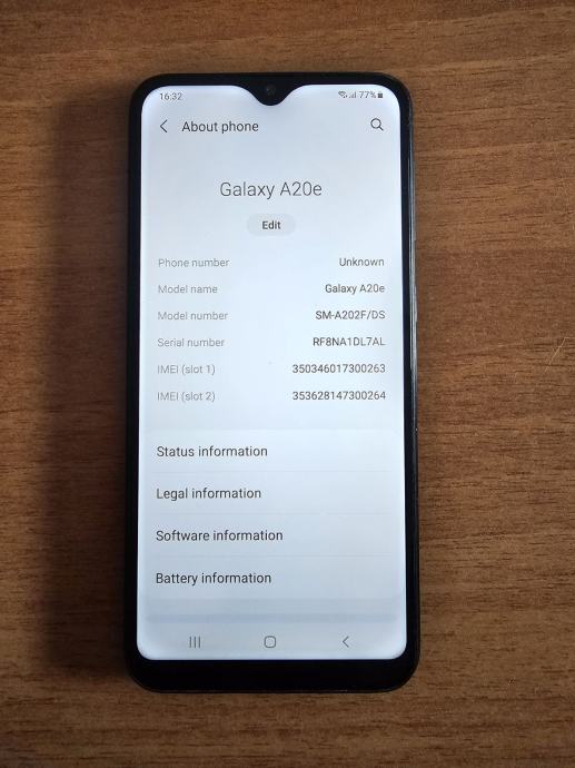 Model: Samsung Galaxy A20e (SM-A202F/DS)