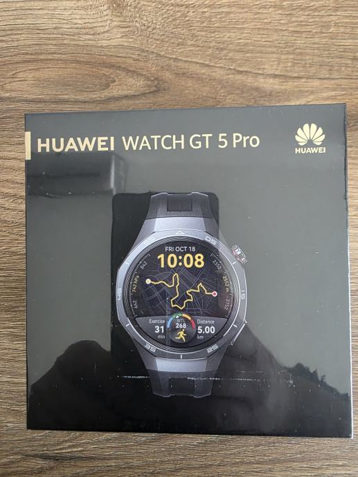 Samsung Galaxy A56 5G dolazi u bijeloj boji i potpuno je tvornički zapakiran. Huawei Watch GT 5 Pro također je nov i zapakiran, u crnoj boji s tamnom remenicom.