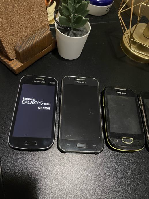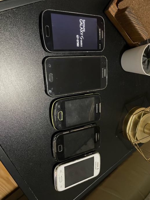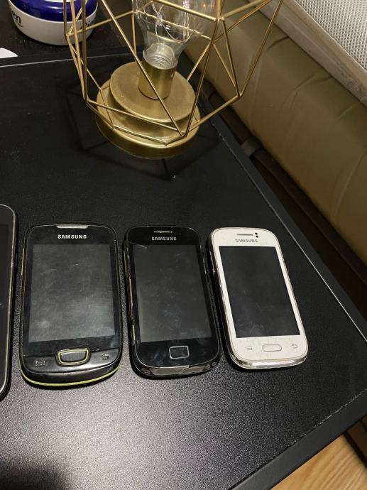 Prodajem set od pet samsung telefona, jednom samo nedostaje baterija (bijeli), nisu testirani, jedan neće da se pokrene (stoji na logu), dva mala su ispravni koliko sam uspe istestirati. Uz njih ide kamara maskica. Cijana za komplet 20€.
