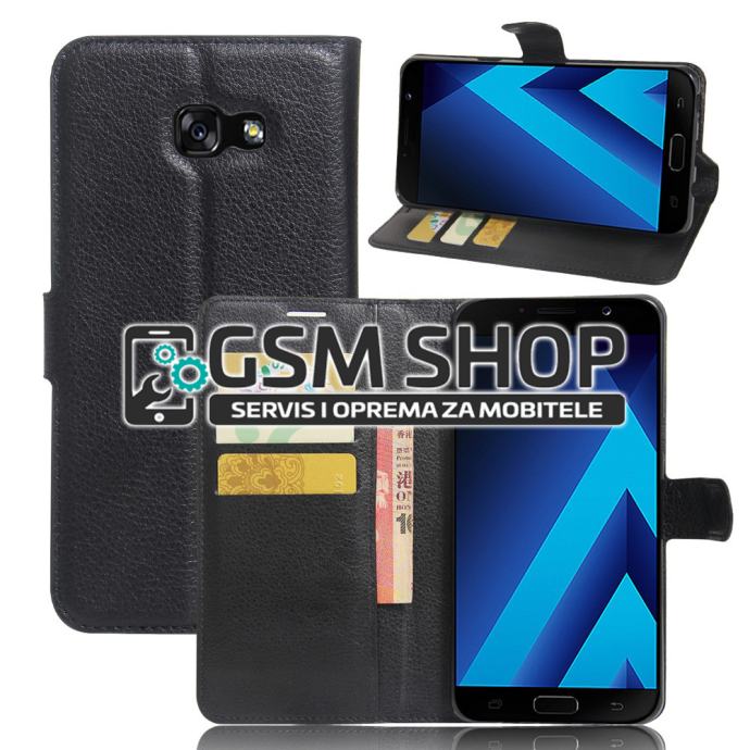 Kožna torbica futrola Samsung Galaxy A7 (2017) wallet Litchi crna