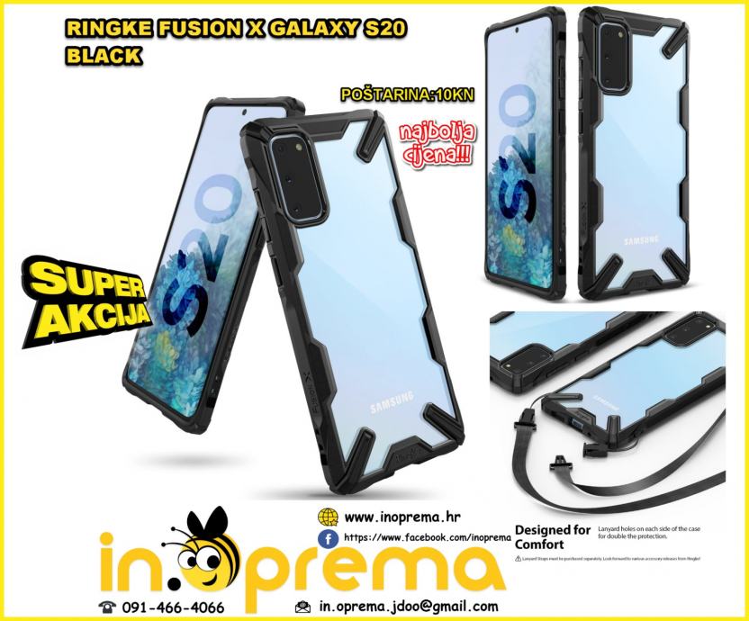 RINGKE FUSION X zaštita za Samsung GALAXY S20 (CRNA) MASKA MASKICA FUTROLA TORBICA SILIKONSKA POSTARINA 10 KN 091/466-4066
