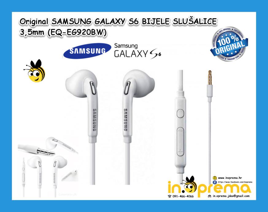 SAMSUNG GALAXY S6 S-6 S 6 G920 SLUŠALICE BIJELE BOJE SLUSALICE ORGINAL
