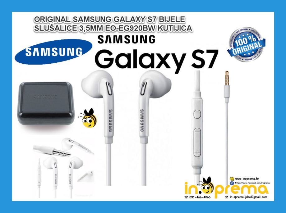 SAMSUNG GALAXY S7 S-7 S 7 SLUSALICE ORGINAL BIJELE EO-EG920BW KUTIJICA