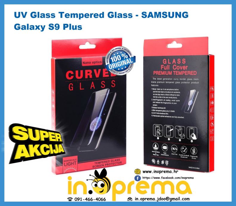 Kaljeno staklo sa UV ljepilom i UV LAMPOM zaSAMSUNG GALAXY S9+ PLUS KARAKTERISTIKE: