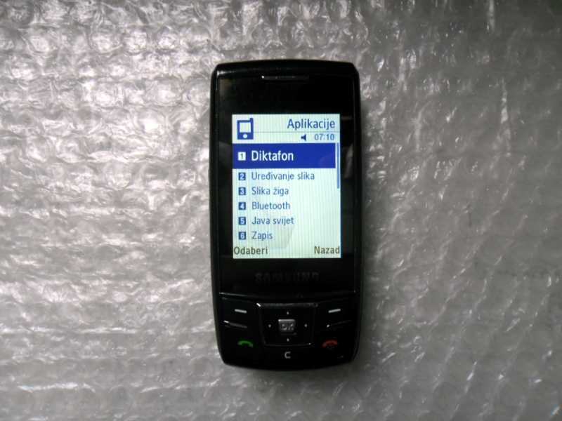 Prodaje se mobitel Samsung D880 za dvije SIM kartice, jako dobro očuvan, dolazi s punjačem. Ekran je veličine 2.3 inča s 256.000 boja, memorija 60MB te podržava microSD kartice. Kamera je 3.15 megapiksela s autofokusom. Mobitel se povezuje Bluetoothom i USBom, a podržava i TV-out.