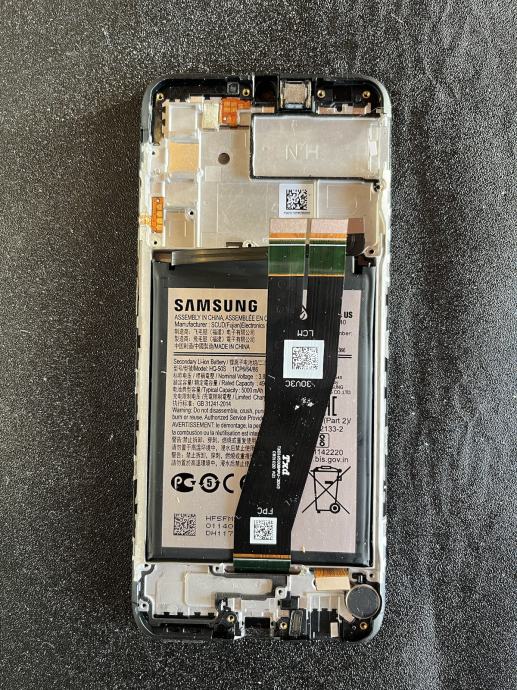 Rabljeni originalni ekran za Samsung Galaxy A02s sa oštećenim staklom. Oštećenje ne utječe na rad mobitela. Sa kućištem, baterijom i poklopcom baterije.