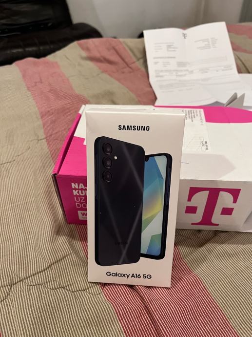 Potpuno novi crni Samsung Galaxy A16 5G u originalnom pakiranju, nikad korišten. Idealan za sve koji traže moderan i pouzdan pametni telefon s 5G tehnologijom.