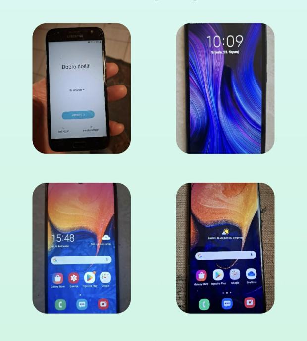 Samsung Galaxy J3 (20€), A10 (40€) i A50 (70€), Xiaomi Redmi 6 (35€). Dual sim, rade na sve kartice. Cijene su fiksne, bez zamjena. Preuzimanje u Petrijevcima, Osijeku ili po dogovoru. Slanje poštom isključivo nakon uplate (+8€ poštarina). MOBITELI SU DOSTUPNI DOK JE OGLAS AKTIVAN. 0989605097, viber, whatsapp.