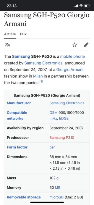 Samsung Giorgio Armani SGH-P520 Titan Gray Cellular Phone.