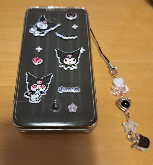 Y2K Samsung Galaxy Folder, crni iz Južne Koreje+maskica+Kuromi charm