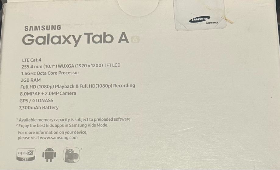 Samsung Galaxy Tab A 6 10.1" (Wi-Fi) - osnovne tehničke specifikacije