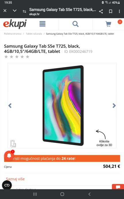 Prodajem novi Samsung Galaxy Tab S5e. Kupljen u inozemstvu kao stara zaliha ( izložbeni primjerak - nema garanciju ). Tablet ima Super Amoled ekran, kvalitetnu sliku i karakteristike. Stvoren za gledanje filmova i multimediju. Kutija i komplet tvornička oprema. Tablet radi na wifi, ali i na mobilnim mrežama jer prima sim karticu (svih operatera)