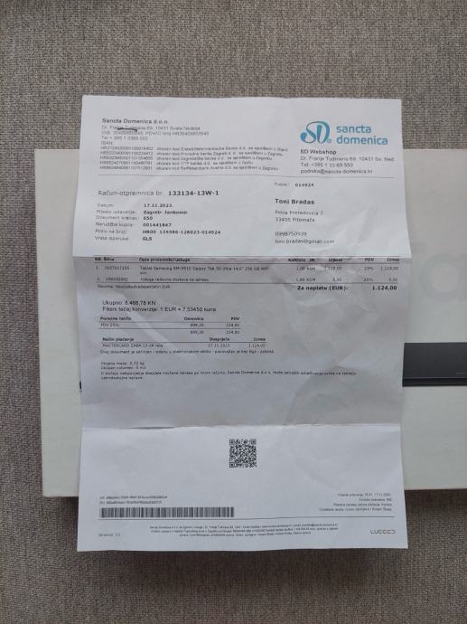 Uz njega dolazi kutija papiri usb olovka i račun.