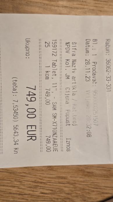 Prodaje se rabljeni tab S9 kao novi, bez i jedne crtice u potpunosti kao novi, original pakiranje i dodatna maska kao i tipkovnica.