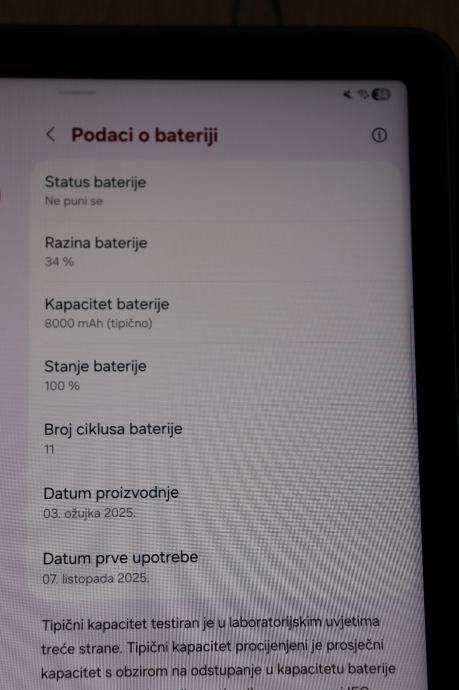 Korišten svega par puta. Uređaj ima kapacitet baterije od 8000 mAh koja osigurava dugotrajno korištenje bez čestog punjenja.