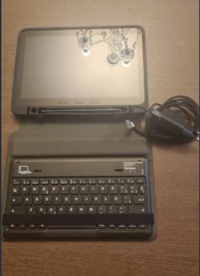 očuvan i praktičan tablet sa olovkom i tipkovnicom u kompletu te vrlo izdržljivom maskicom koja dolazi sa tipkovnicom