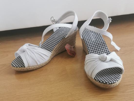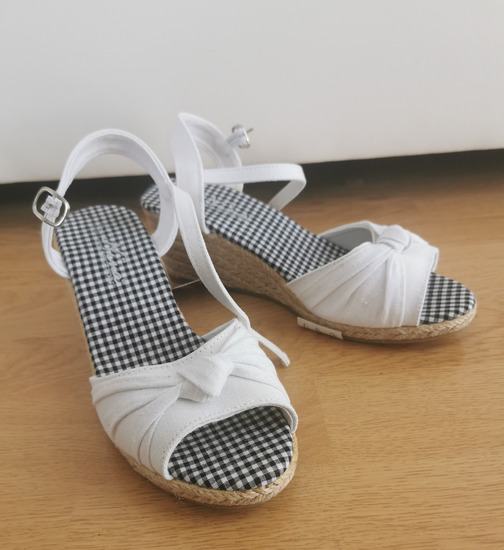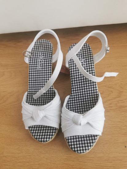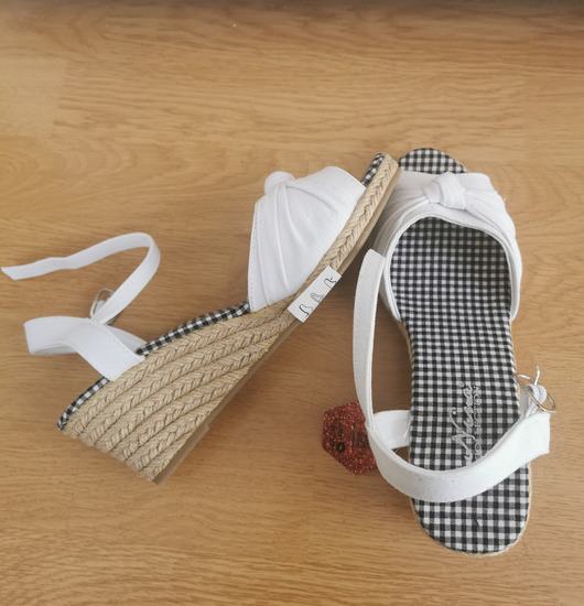 Bijele ljetne platforme od brušene kože. Veličina 37.