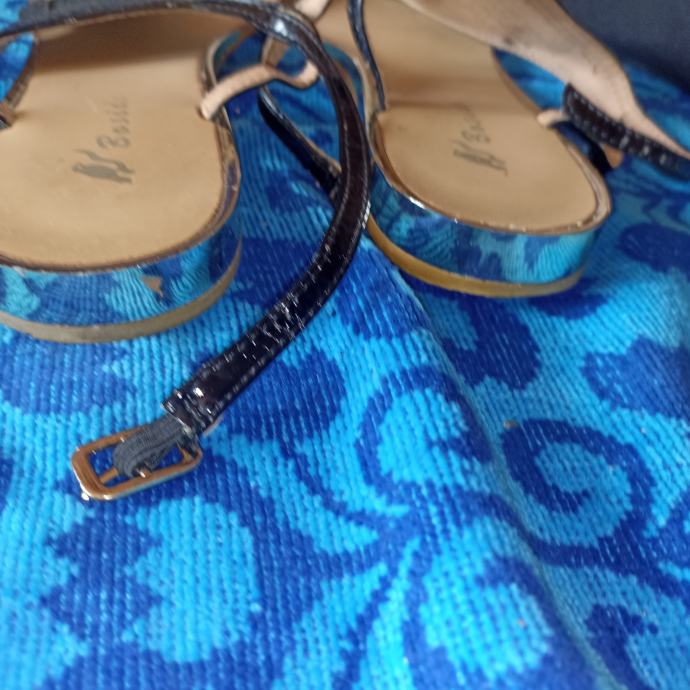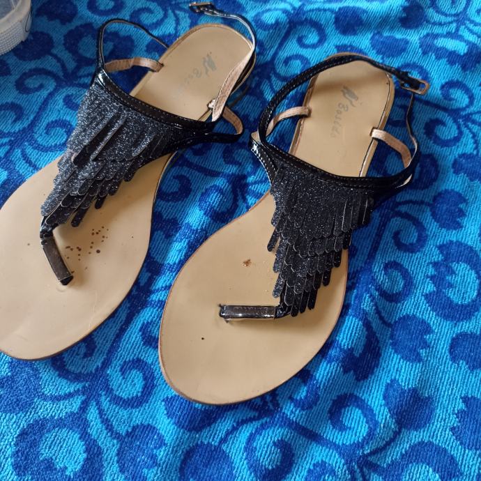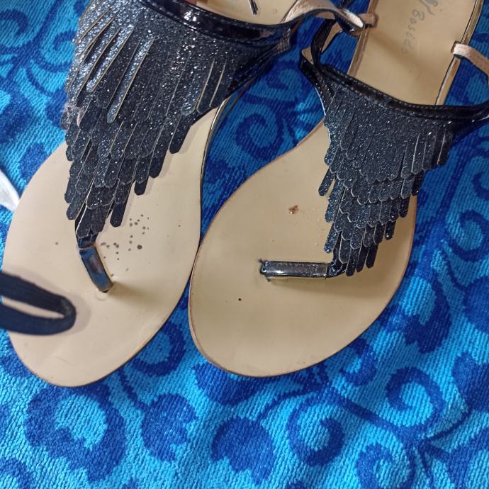BOSIDO 36 CRNE SVJETLUCAVE GLEŽANJ REMEN TANGA SANDALE ŽENSKE TSTEG