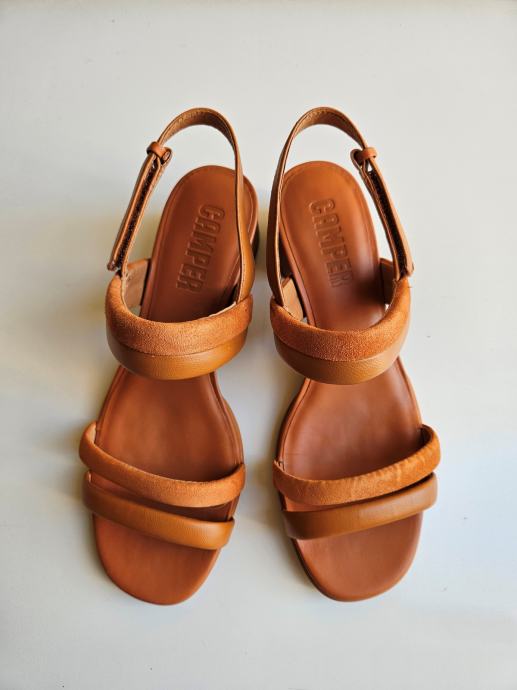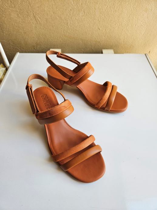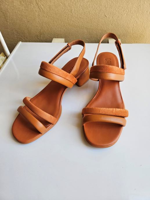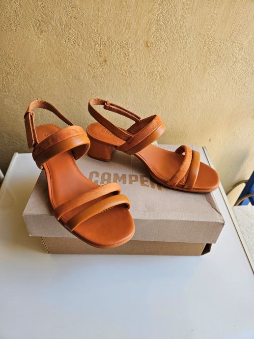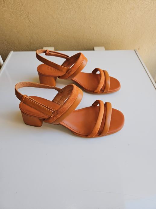 Nove i nikada nošene Camper narančaste kožne sandale. Remeni i gazište je kožno, peta nije previsoka, visina pete je 4 cm te su zbog toga iznimno udobne za hodanje. Prekrasne narančaste boje. Veličina 38. Plaćene 150 eura, prodajem za 80 eur. Dolaze s pripadajućom kutijom.