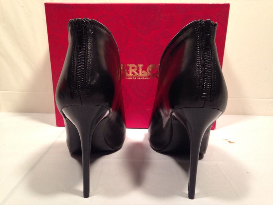 GUESS vrlo sexy i elegantne sandale, od prefine, meke crne kože, čizmice s visokom štiklom, s ukrasnim zatvaračem sprijeda ( ciferšlusom ), i drugim na peti straga. Štikla je visoko sjajna.